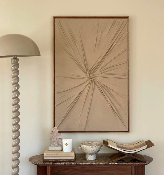An exploration of texture and depth, where painting meets raw, natural elements. These canvases feature fabric, sand from the very beaches I’ve visited (as a huge ocean-freak), and other materials that bring the experience of a place into the artwork itself. The raw textures symbolize the beauty I see in life’s imperfections—the difficult times, the bumpy rides, and the depth they add to our journey.